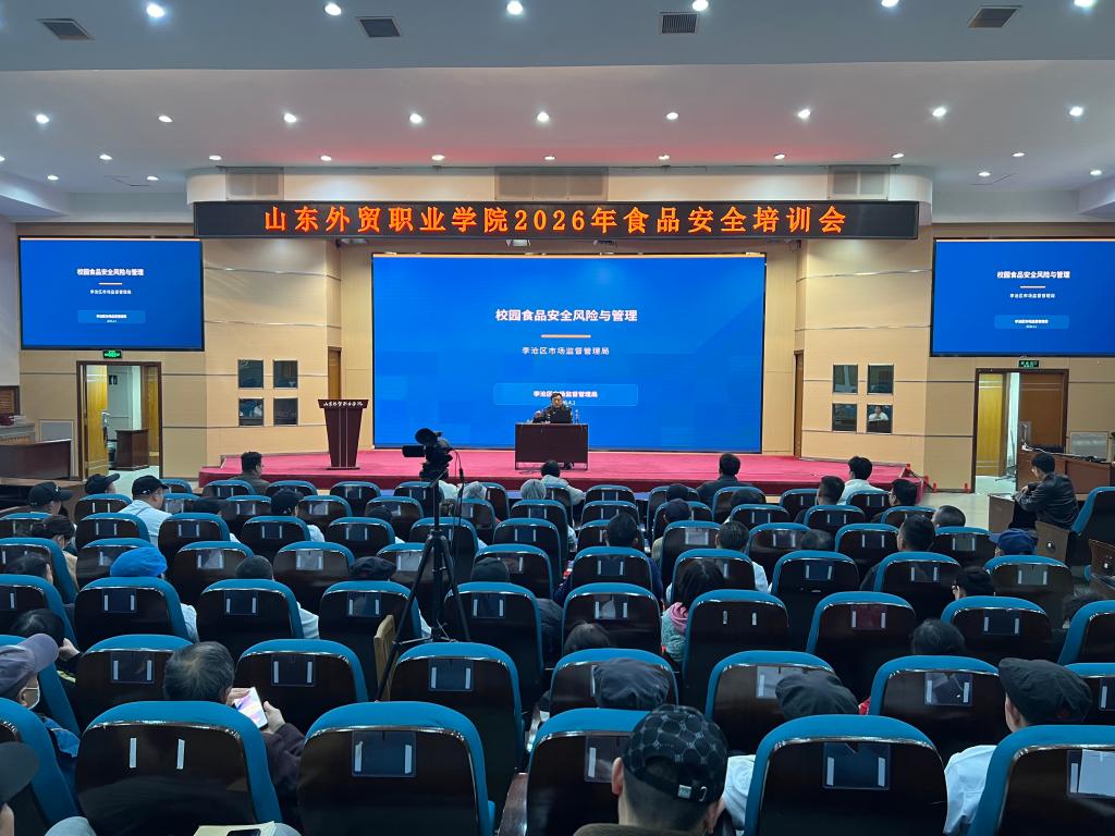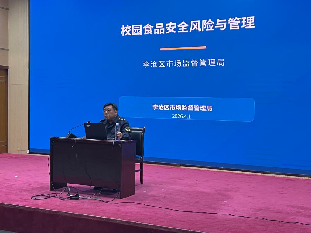 为进一步筑牢校园食品安全防线,规范餐饮服务操作流程,4月1日下午,学院后勤服务处在学术报告厅举办食品安全风险与管理专题培训。培训邀请李沧区市场监督管理局副局长高大勇主讲,学院食品安全管理人员及全体餐饮从业人员参加了培训。